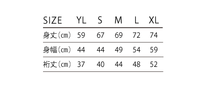 YL/S~XL ¥4930(税込¥5423)