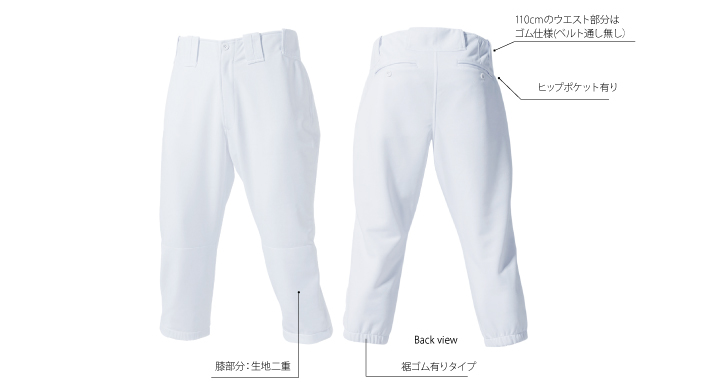 ・膝部分:生地二重/裾ゴム有りタイプ
