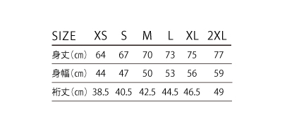 XS~XL ¥490(税込¥539)