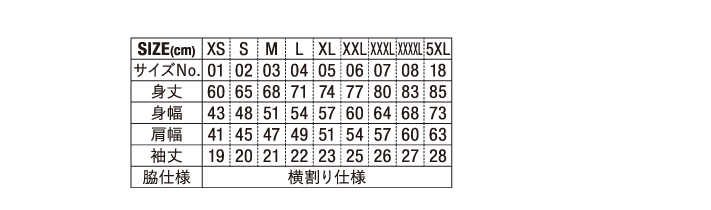 ・サイズ:XS~5XL