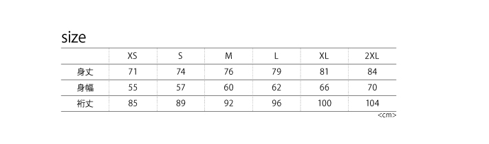 2XL ¥6500(税込¥7150)